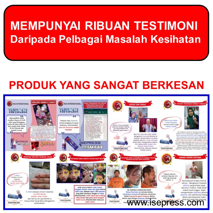KALAU ANDA NAK INFO TENTANG TESTIMONI ATAU PENGALAMAN PENGGUNA ISEPRESS, BOLEH TERUS MEMBACA DI BAWAH