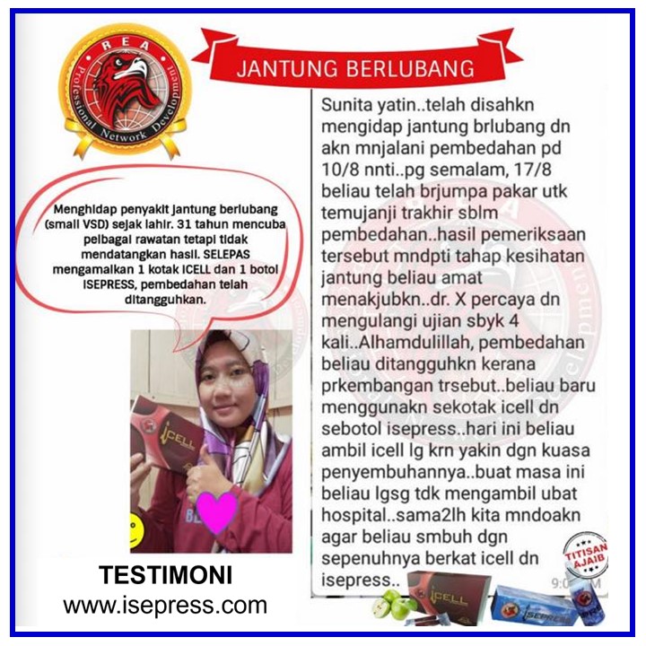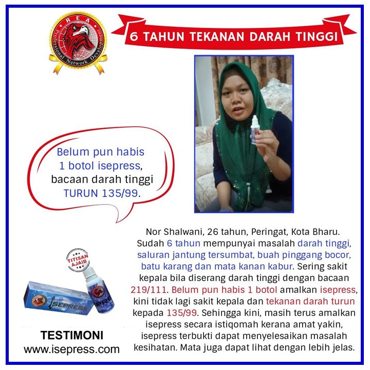 DI BAWAH INI PULA ADALAH CATATAN PENGALAMAN PENGGUNA (TESTIMONI) MEREKA YANG TELAH MENDAPAT MANFAAT SELEPAS MENGAMALKAN ISEPRESS
