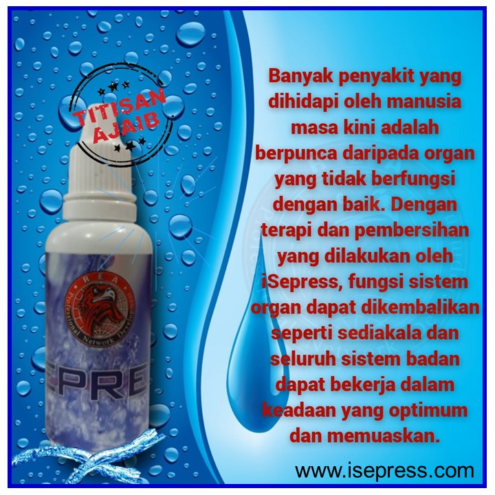 Fungsi ISEPRESS adalah sebagai PENAWAR dan menyingkirkan toksin dalam tubuh seterusnya merawat masalah kesihatan kita.